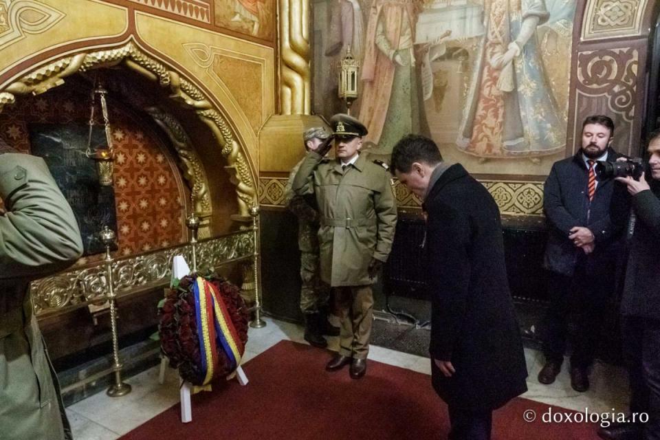 De la ora 17.30, Președintele României, împreună cu Mitropolitul Moldovei și Bucovinei, s-au rugat la Mănăstirea „Sfinții Trei Ierarhi” pentru sufletele celor care au înfăptuit Unirea de la 1859 și au depus coroane de flori la mormântul Domnitorului Alexandru Ioan Cuza, aflat în incinta sfântului lăcaș.