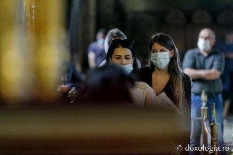 După trei luni, a fost permis din nou accesul credincioșilor în lăcașurile de cult în timpul slujbelor. Vă prezentăm câteva fotografii realizate astăzi, 18 iunie, la Catedrala Mitropolitană din Iași.