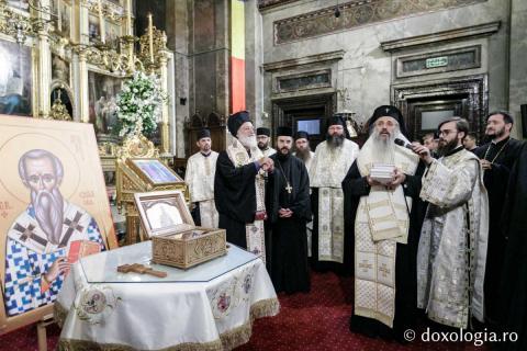 Înaltpreasfințitul Teofan, Mitropolitul Moldovei și Bucovinei și Arhiepiscopul Iașilor, împreună cu Preasfințitul Nichifor Botoșăneanul, Episcop-vicar al Arhiepiscopiei Iașilor, înconjurați de un sobor de preoți și diaconi, dar și de numeroși credincioși, au întâmpinat racla cu cinstitele moaște în curtea Catedralei Mitropolitane, participând mai apoi la un scurt moment de rugăciune în Catedrala Mitropolitană.