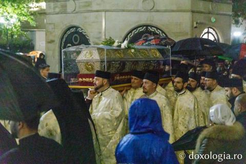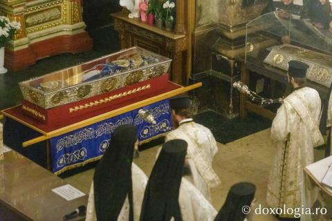 La primele ore ale dimineții, miercuri, 8 octombrie 2025, soborul de slujitori ai Catedralei Mitropolitane ieșene, avându-l în frunte pe Preasfințitul Părinte Nichifor Botoșăneanul, Episcop-vicar al Arhiepiscopiei Iașilor, au înălțat rugăciuni și au participat la procesiunea cu moaștele Sfintei Cuvioase Parascheva, așezând racla Sfintei spre închinare.