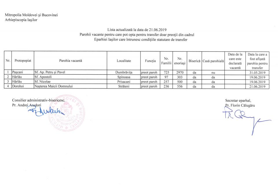 Marţi, 25 Iunie 2019Sectorul administrativ - bisericescComunicate Atașamente: lista_parohii_transfer_21_iunie_2019.jpgparohii vacantetransfer