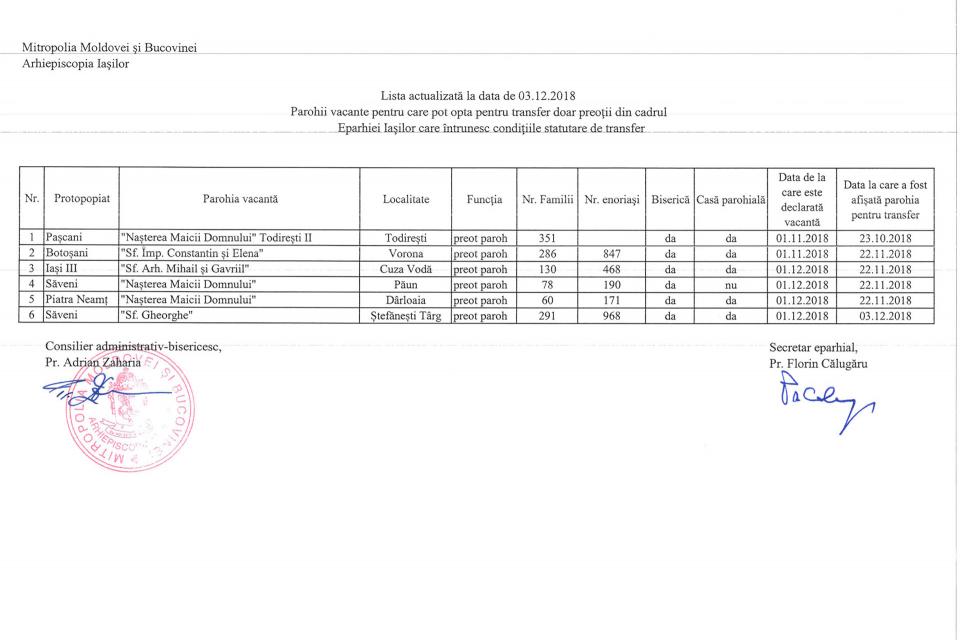 Luni, 3 Decembrie 2018Sectorul administrativ - bisericescComunicate Atașamente: lista_parohii_vacante_transfer_3_decembrie_2018.jpgtransfer