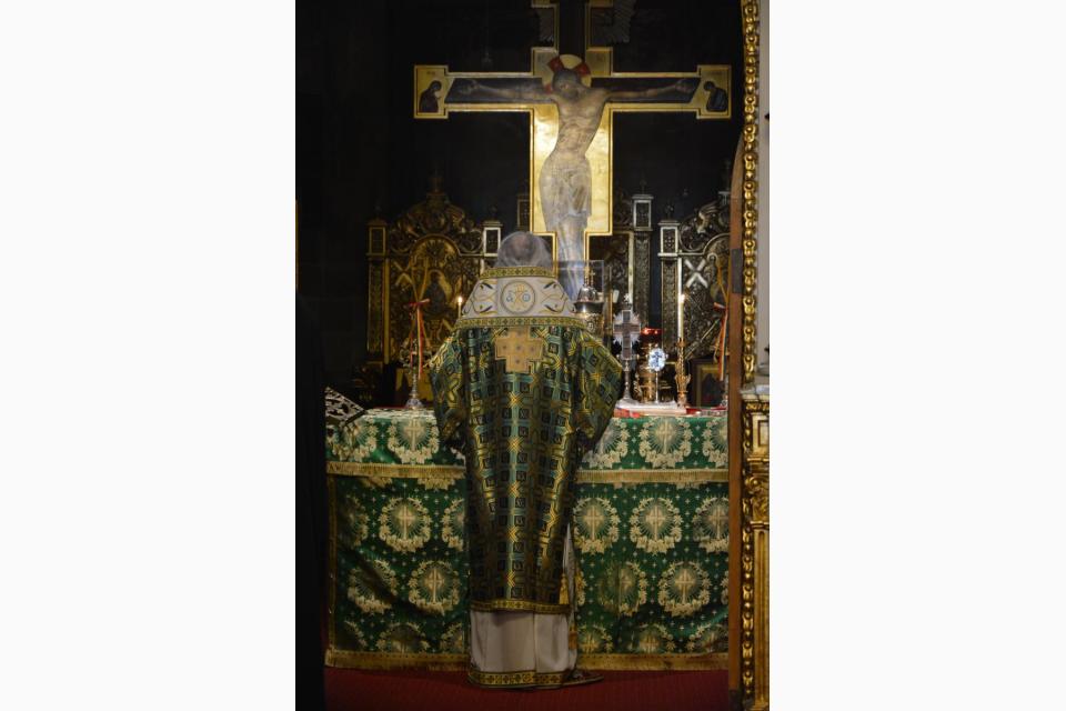 După săvârşirea Sfintei Liturghii, mulţi dintre credincioşii prezenţi s-au împărtăşit cu Sfintele Taine, după care a urmat Vecernia plecării genunchilor, în cadrul căreia IPS Părinte Teofan a citit din faţa uşilor împărăteşti cele şapte rugăciuni, împărţite în trei grupe, rânduite de Biserică pentru praznicul Pogorârii Duhului Sfânt.